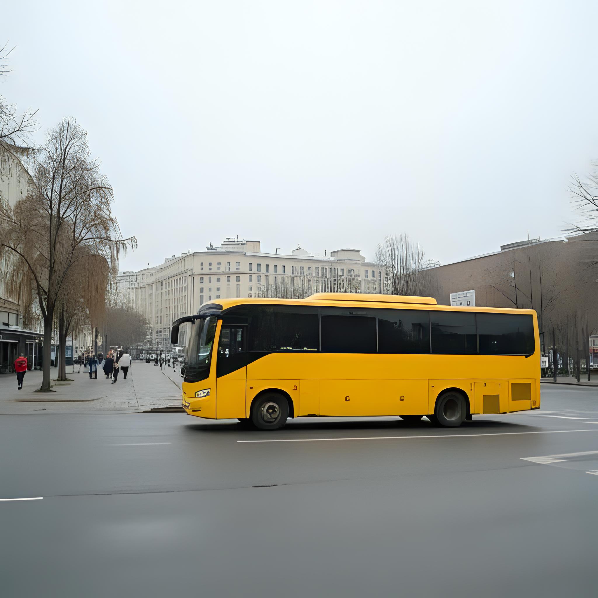 fahrender gelber ukrakinischer Stadtbus (seitliche Ansicht und etwas in der Ferne) auf verlassener Straße in der Stadt Kyiw By Karim Abdel Halim | Published 8. Dezember 2025 | Full size is 2048 × 2048 pixels Leuchtender Supermarkt im Dunkeln